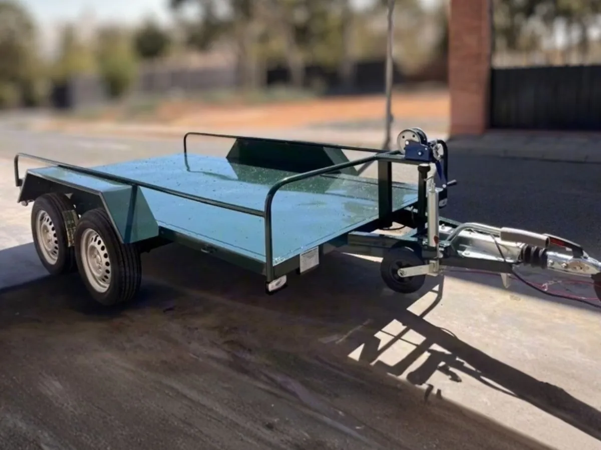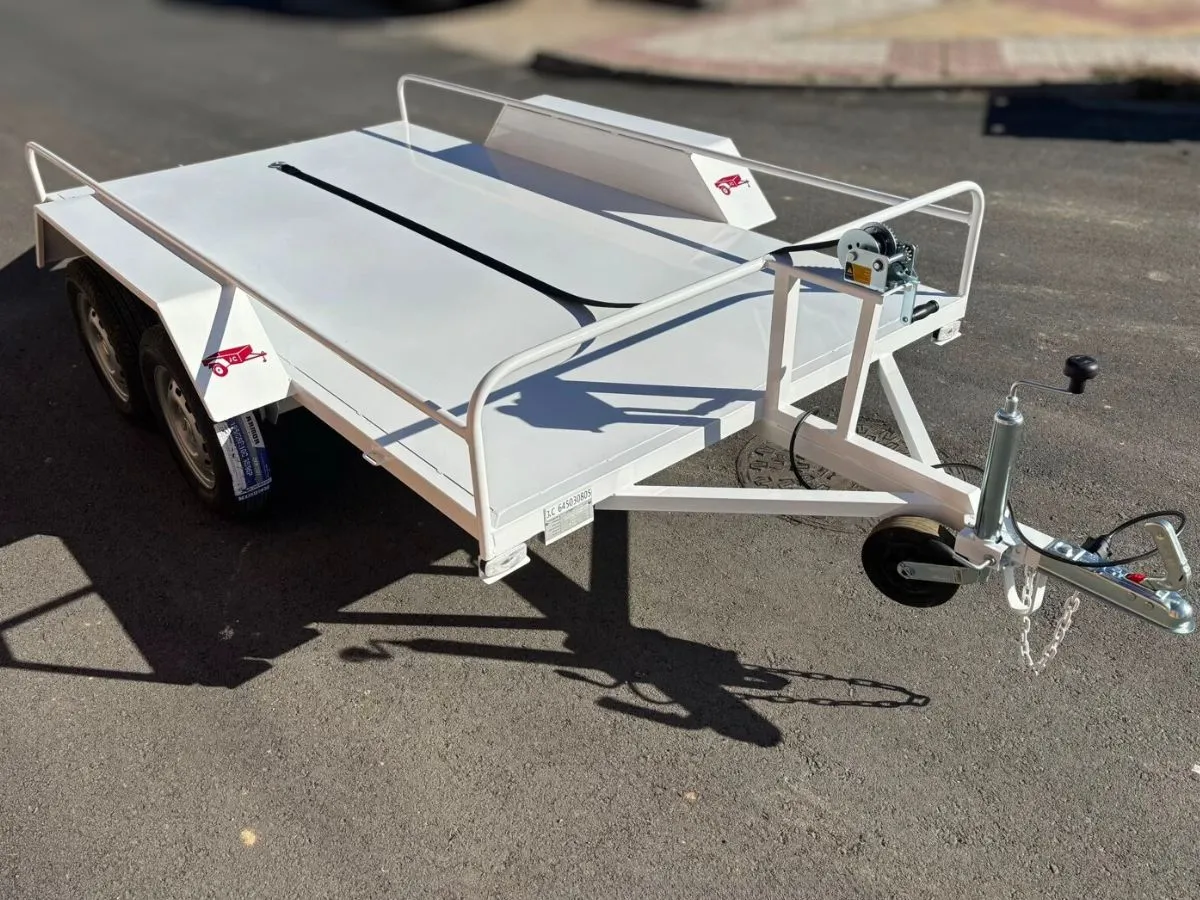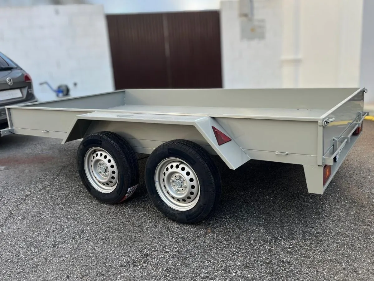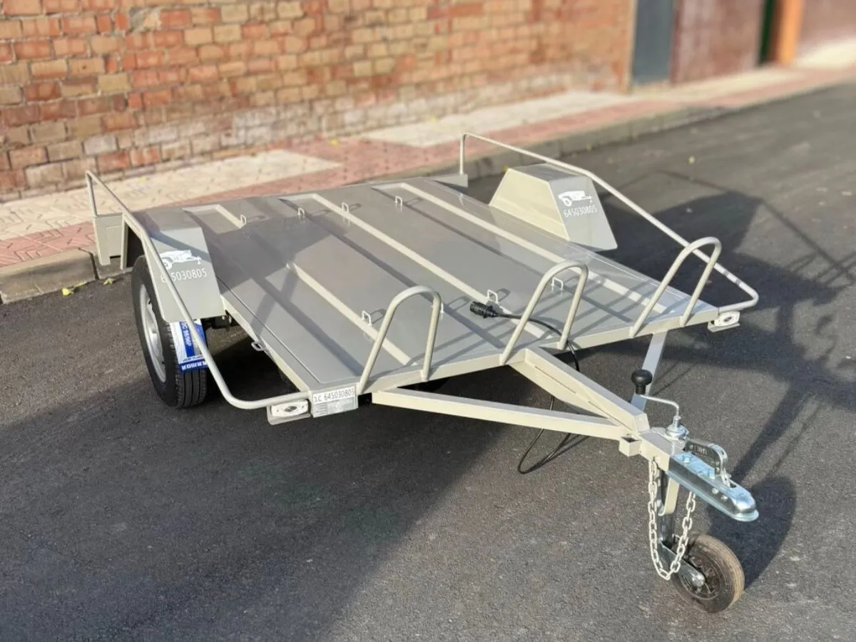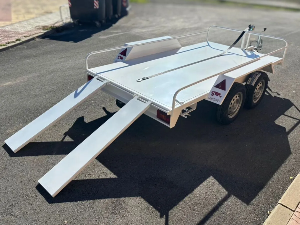 Vendemos remolques plataformas homologados para transportar motos, quads, buggy, carruajes, coches de caballo, maratón, jardinera, aperos, mini tractores, etc…con rampa de carga, con 1 o 2 ejes, con o sin freno, con o sin tableros. Para uso profesional y particular.
