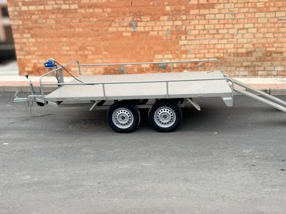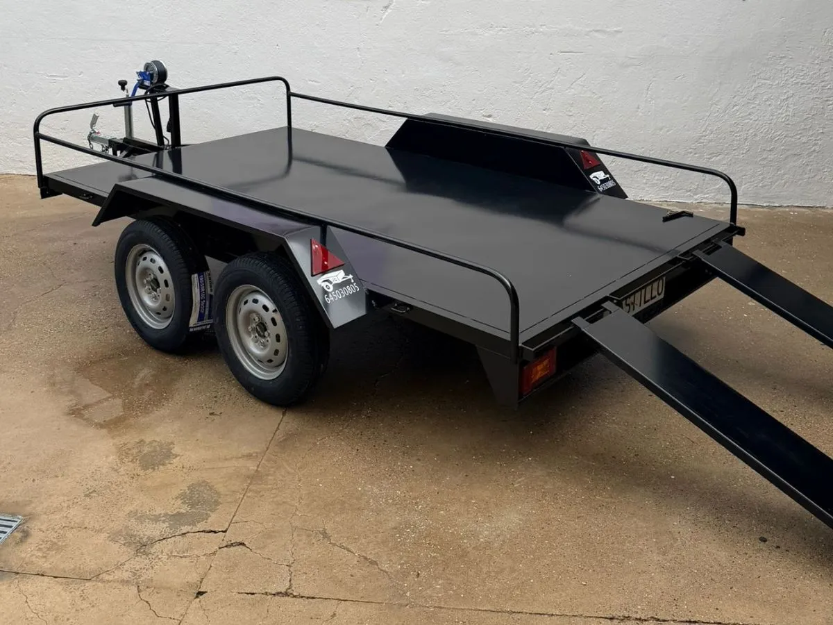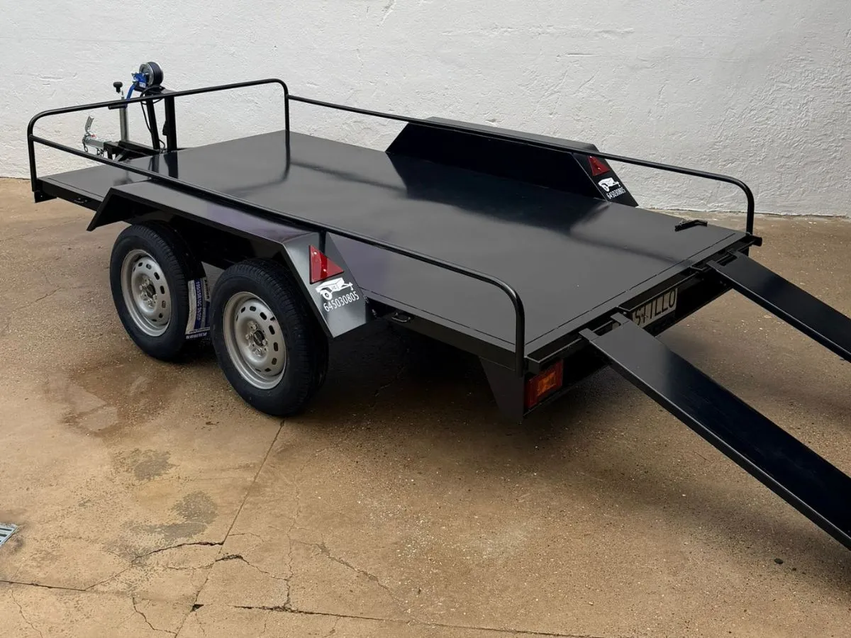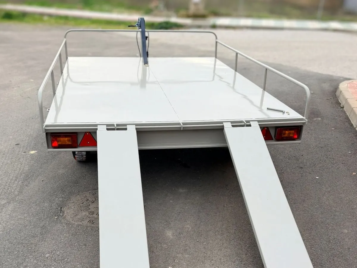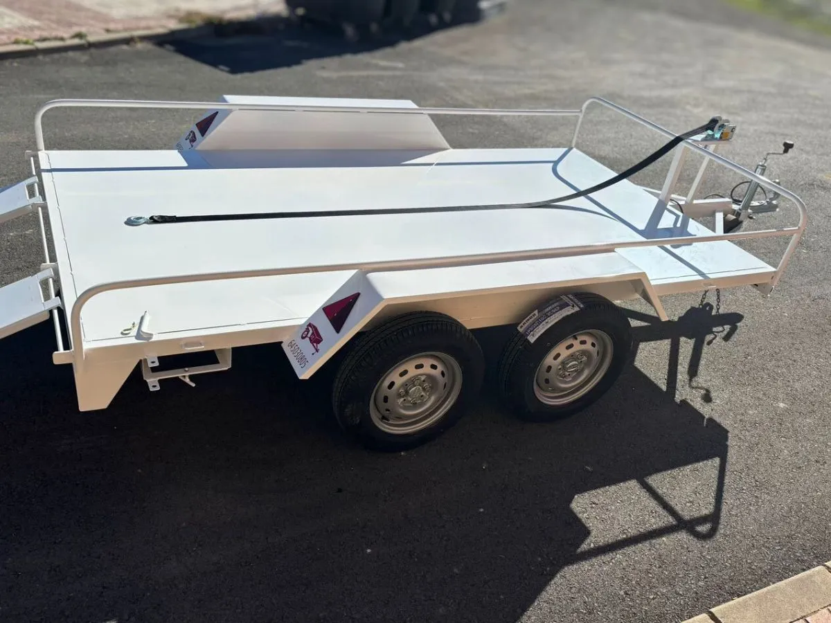 Vendemos remolques plataformas homologados para transportar motos, quads, buggy, carruajes, coches de caballo, maratón, jardinera, aperos, mini tractores, etc…con rampa de carga, con 1 o 2 ejes, con o sin freno, con o sin tableros. Para uso profesional y particular.