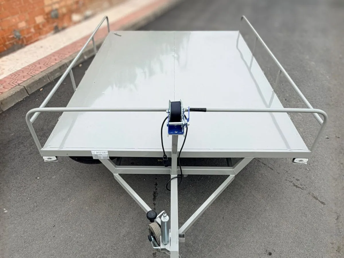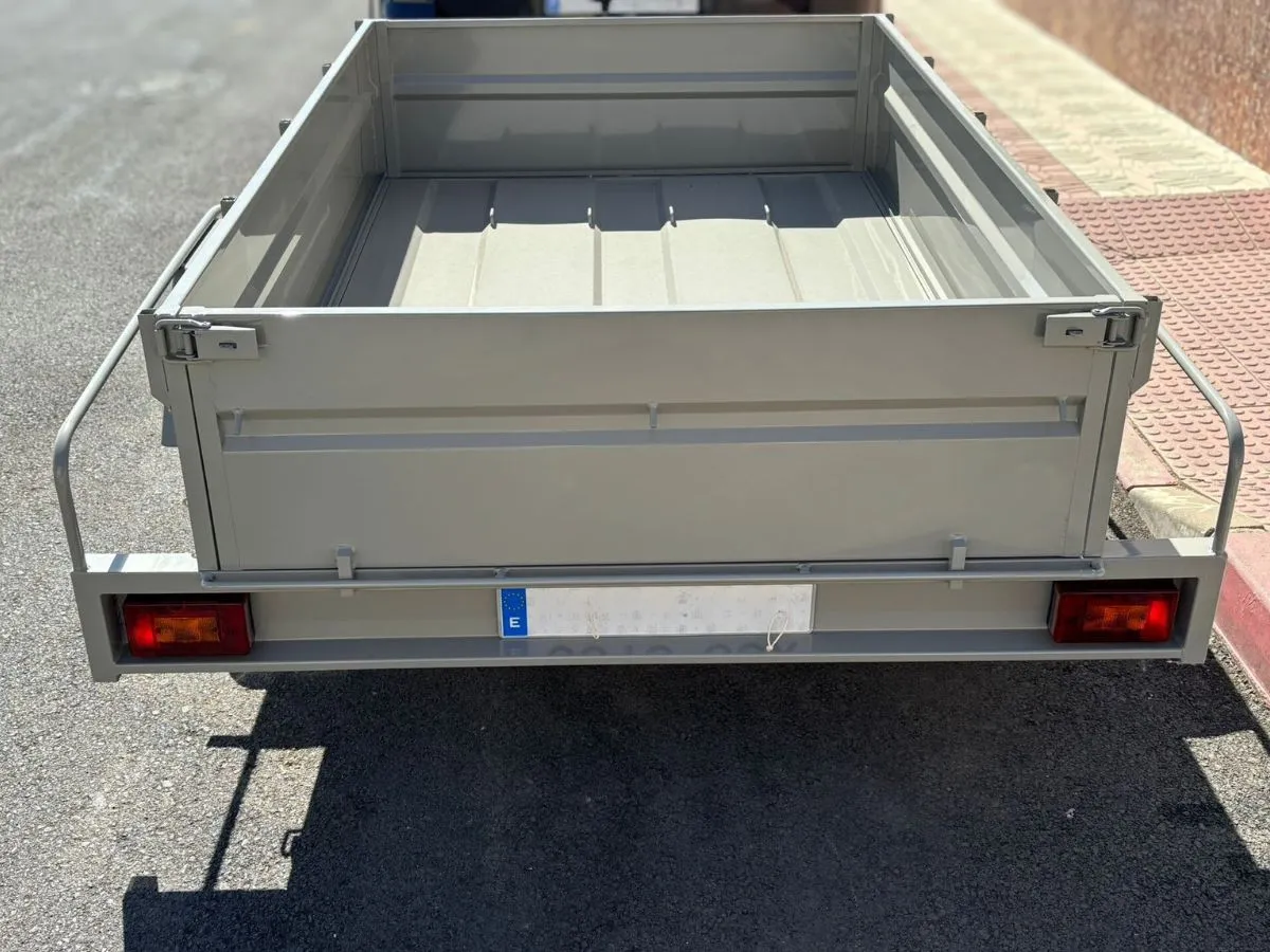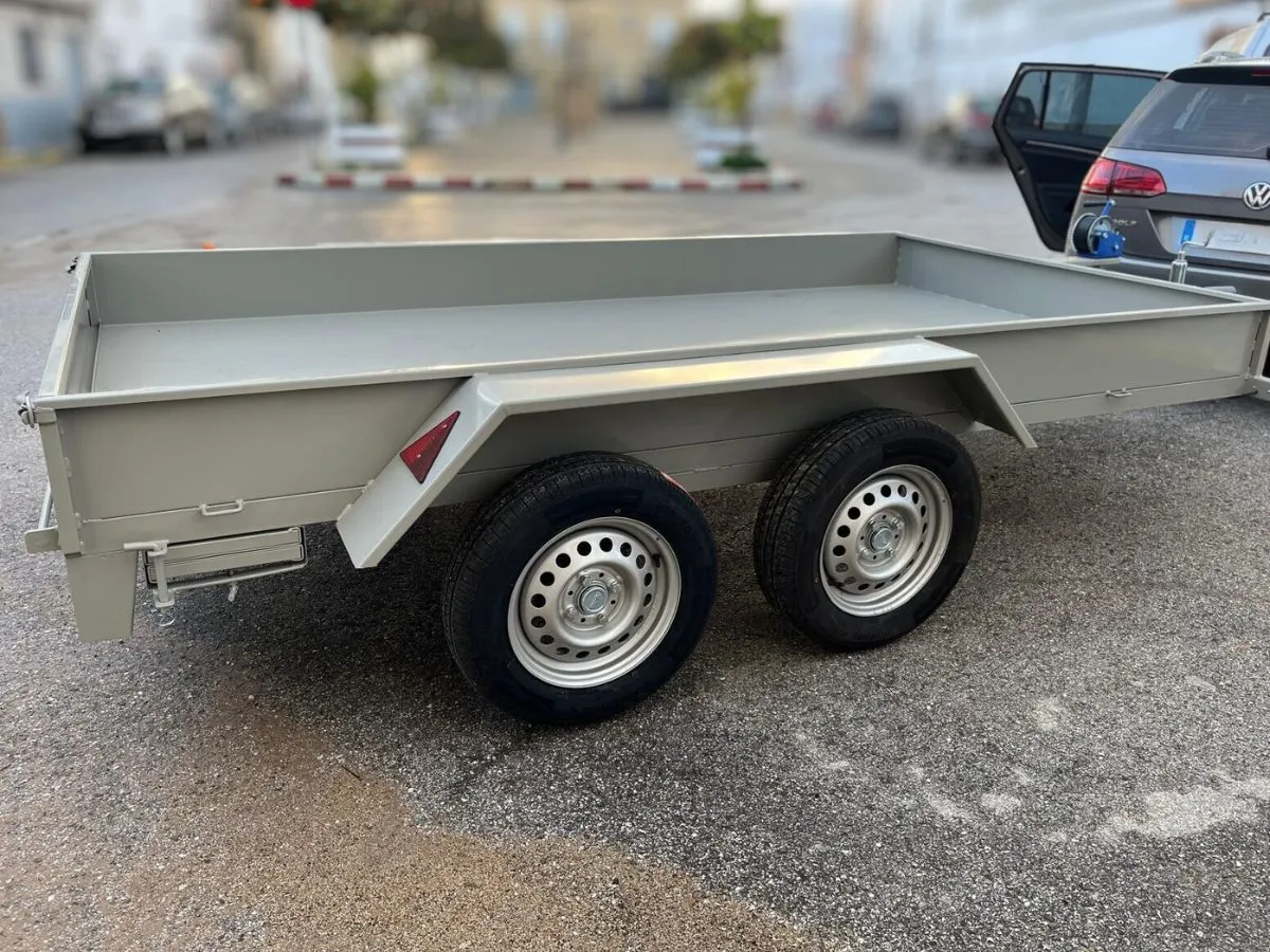 Plataforma batea ideal para transportar articulos voluminosos y pesados. Remolque ligero que se puede llevar con carnet de coche. Rueda de repuesto y rueda jockey incluidas.