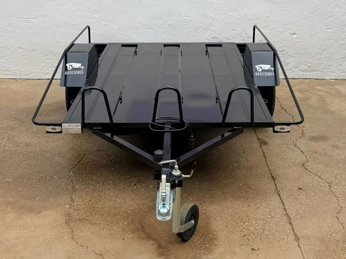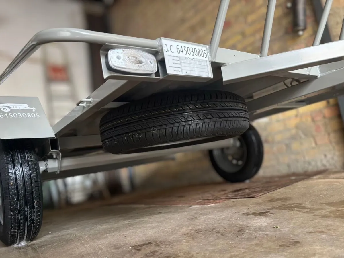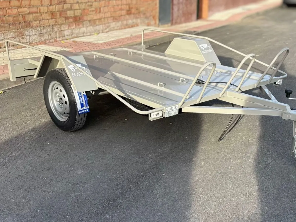 Remolque plataforma ideal para transportar cómodamente hasta 3 motos grandes y usarlo también para llevar otros enseres gracias a sus tableros desmontables. Remolque ligero 750kg. Rueda de repuesto y rueda jockey incluidas.